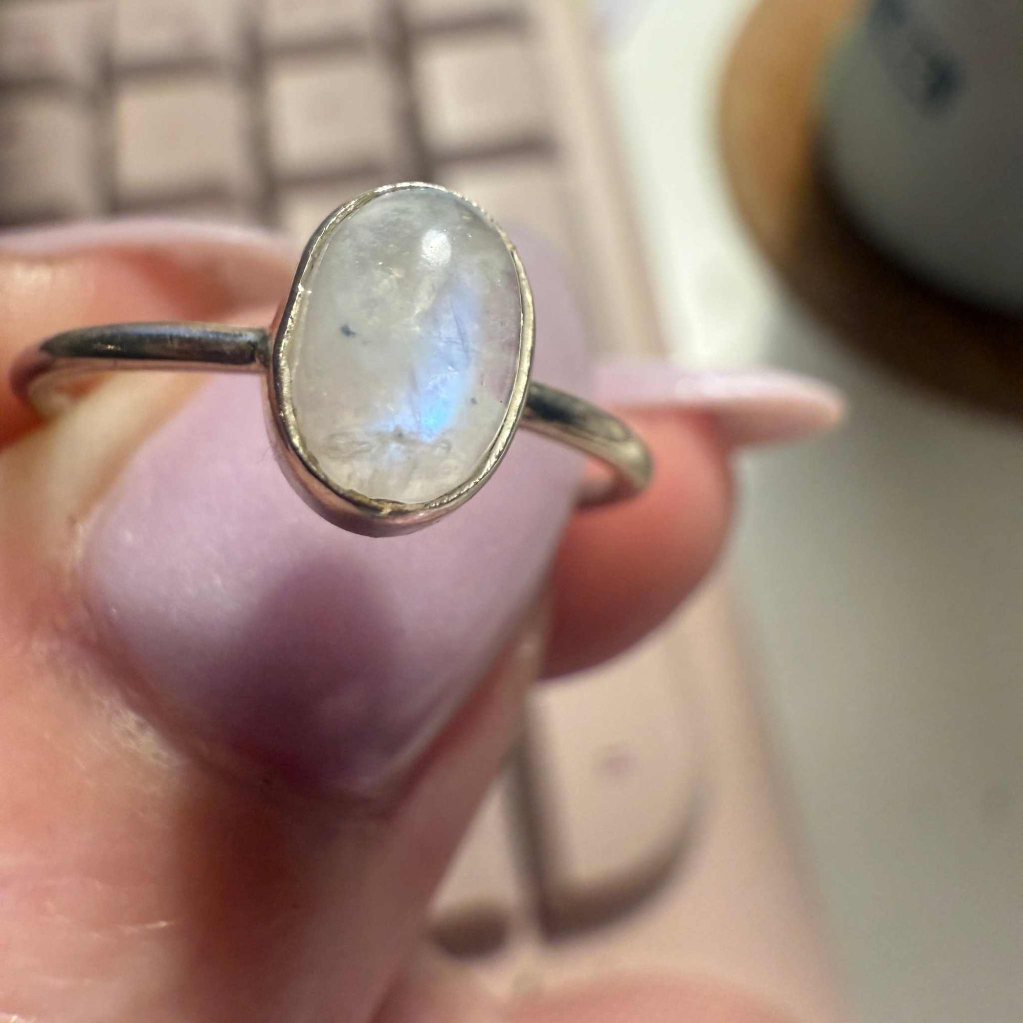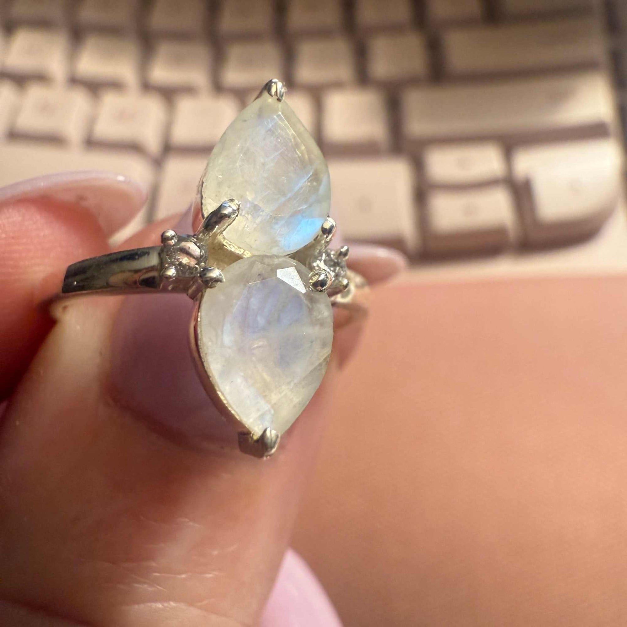 Double Marquise Rainbow Moonstone Ring – Sterling Silver – Size 8