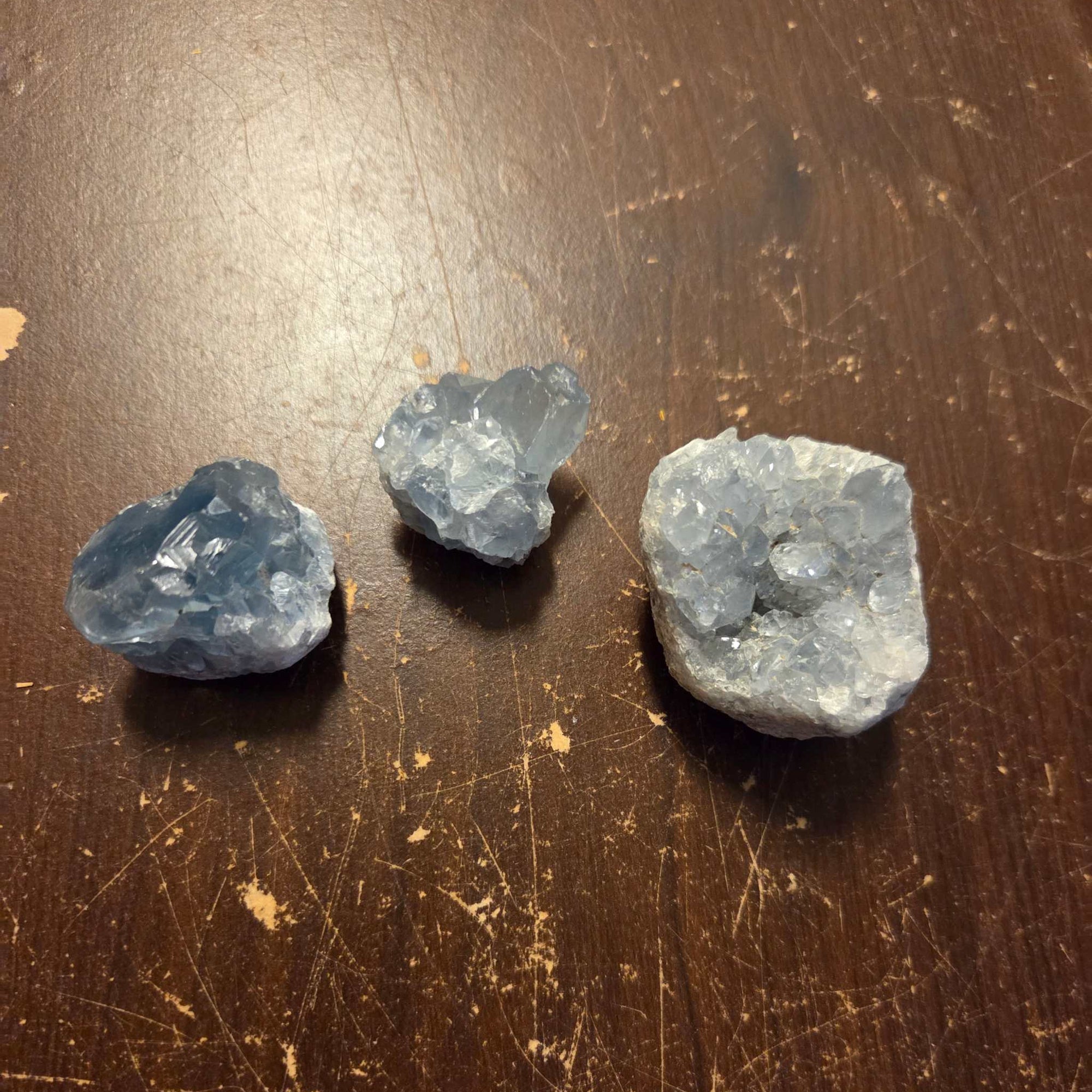 - Avoid Water: Celestite is a relatively soft mineral (3 to 3.5 on the Mohs hardness scale) and can be damaged by water. Clean it using a dry or slightly damp cloth.